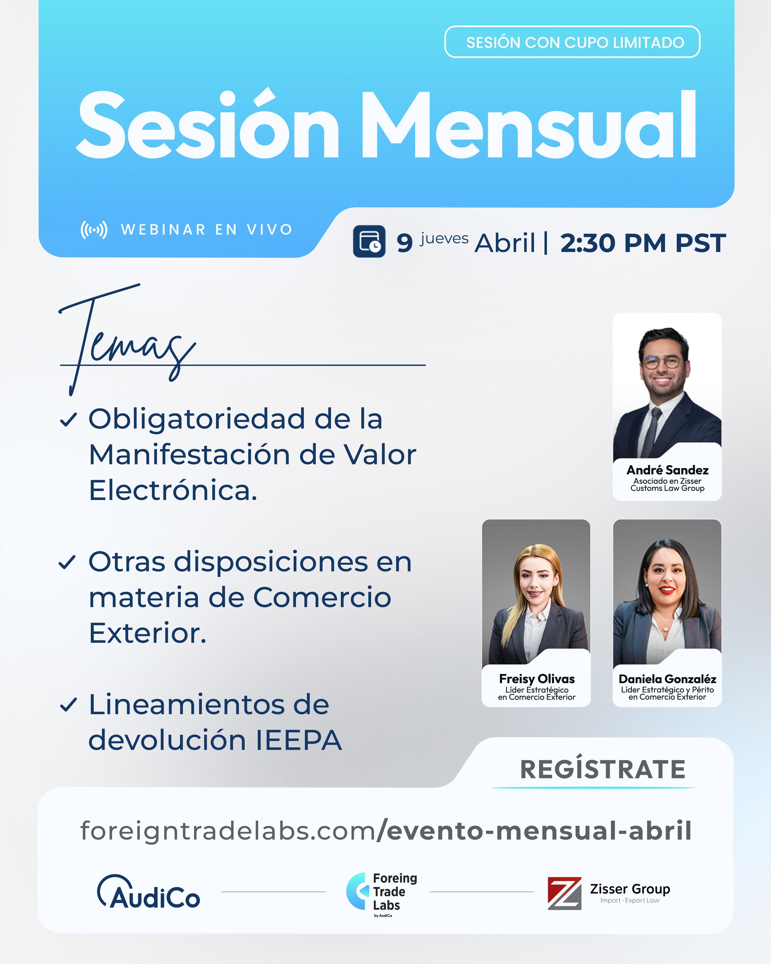 Sesión Mensual de Actualizaciones de Comercio ExteriorConoce los cambios más relevantes publicados durante el mes de Marzo Recuerda que es un evento sin costo y transmitido digitalmente¡Regístrate!